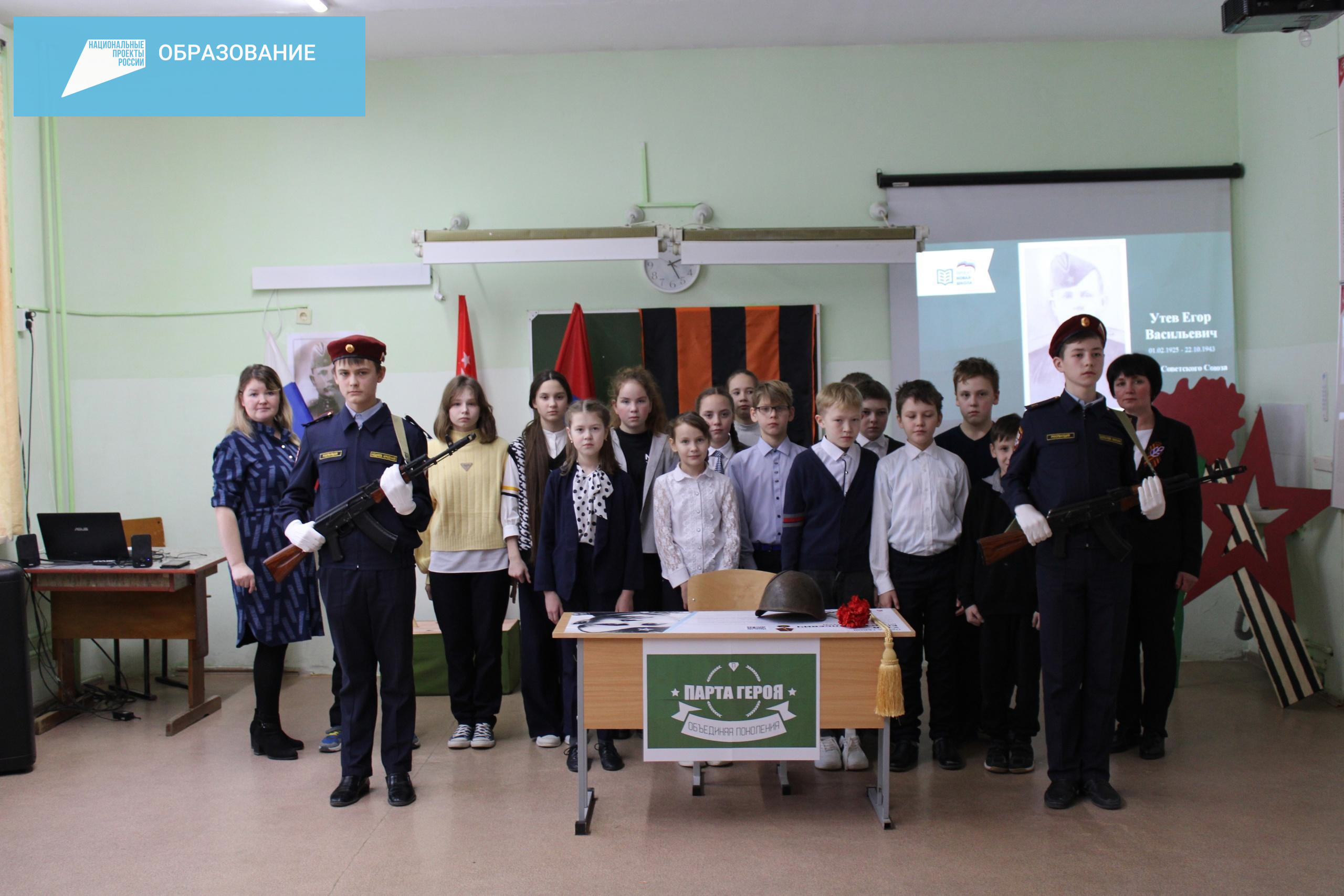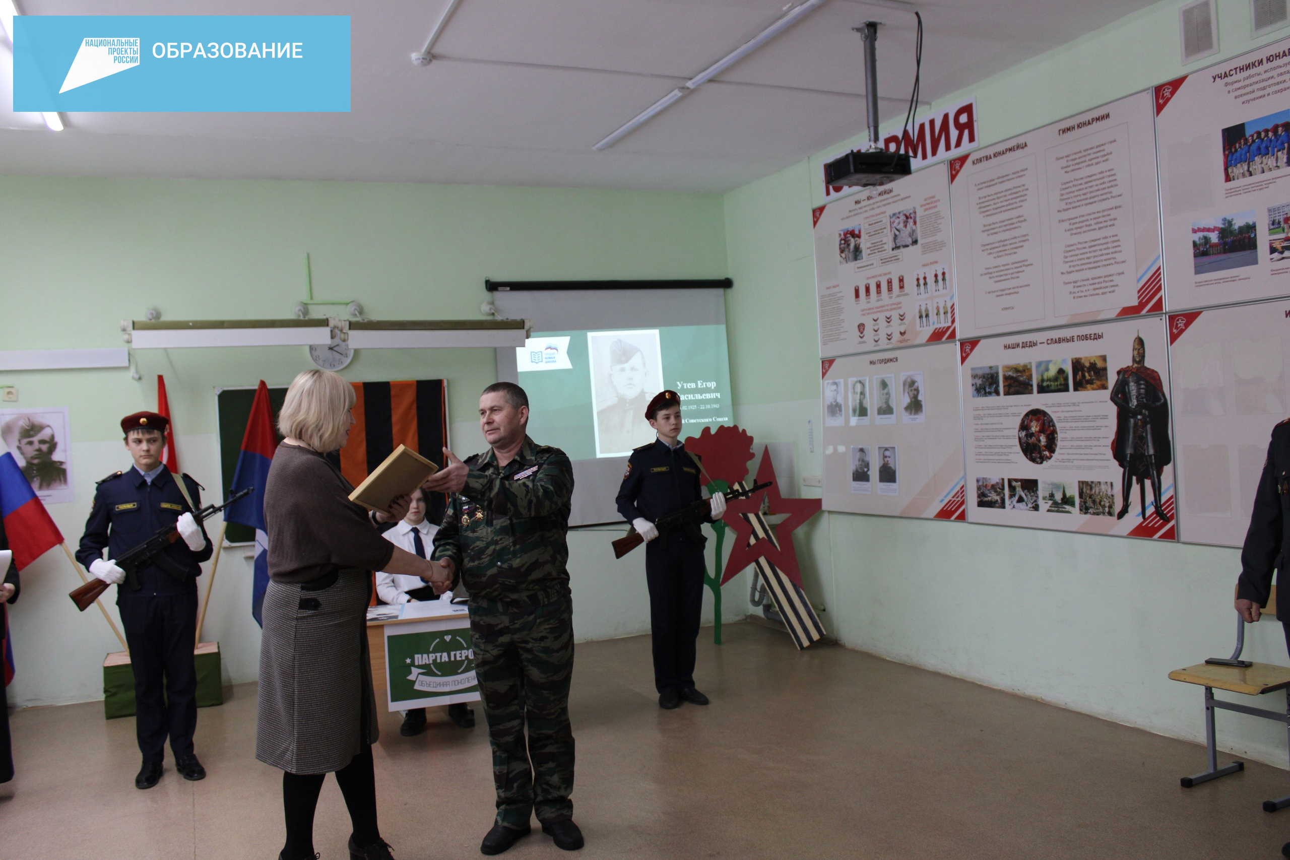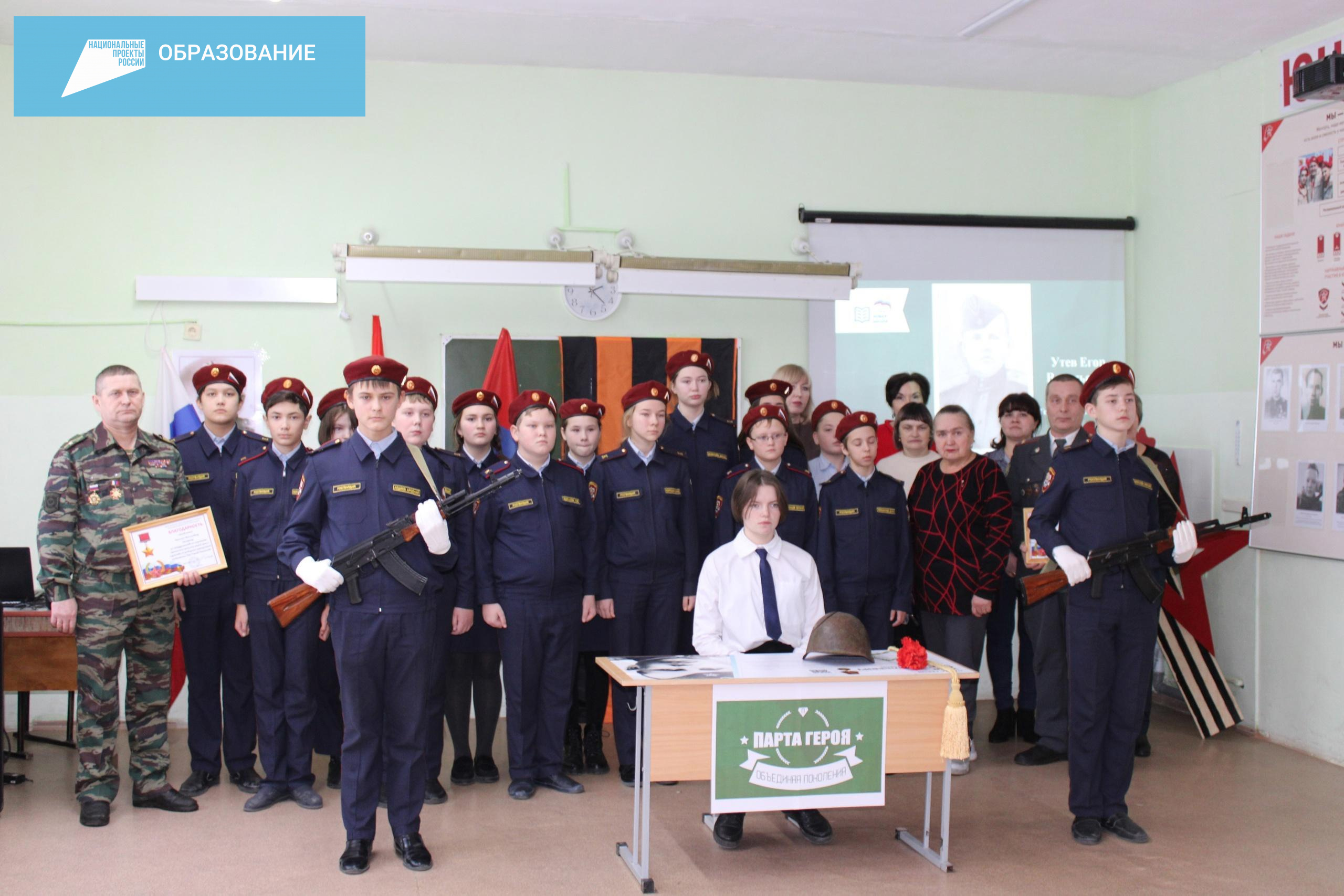 «Парта Героя» — всероссийский образовательный проект партии «Единая Россия», цель которого — в доступной форме рассказать школьникам о земляках, совершивших значимый поступок. Проект «Парта Героя» является победителем XXI конкурса социальных и культурных проектов ПАО «ЛУКОЙЛ».Право сидеть за такой партой получают ученики, имеющие успехи в учебе, победители олимпиад, конкурсов, научно-исследовательских проектов, спортивных соревнований.