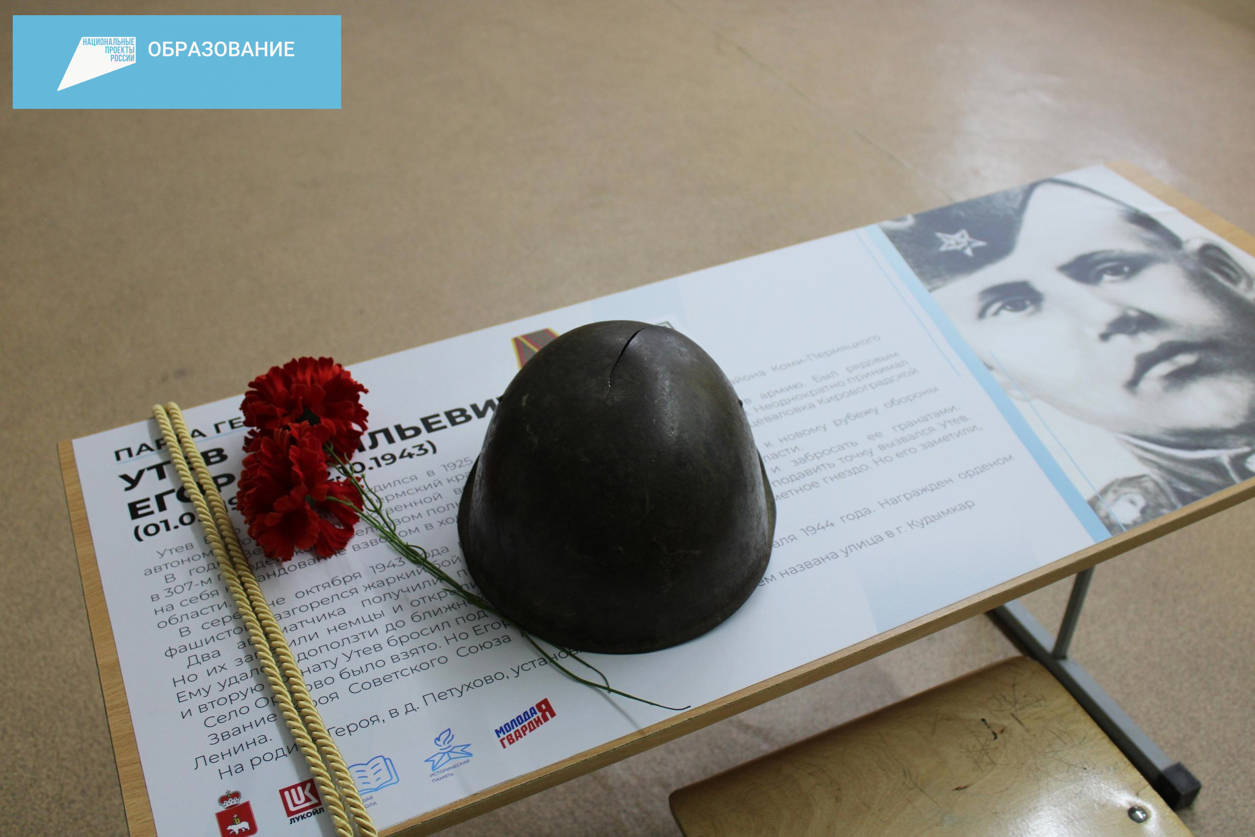 9 декабря, в День Героев Отечества, в Юсьвинской средней общеобразовательной школе состоялась церемония открытия «Парты Героя» в честь Героя Советского Союза Утева Егора Васильевича. Ученический стол с фотографией участника Великой Отечественной войны, отличившегося в боях, установили в одном из классов учебного заведения. Помимо фотографии, на парте рассказано о его заслугах, о фактах биографии