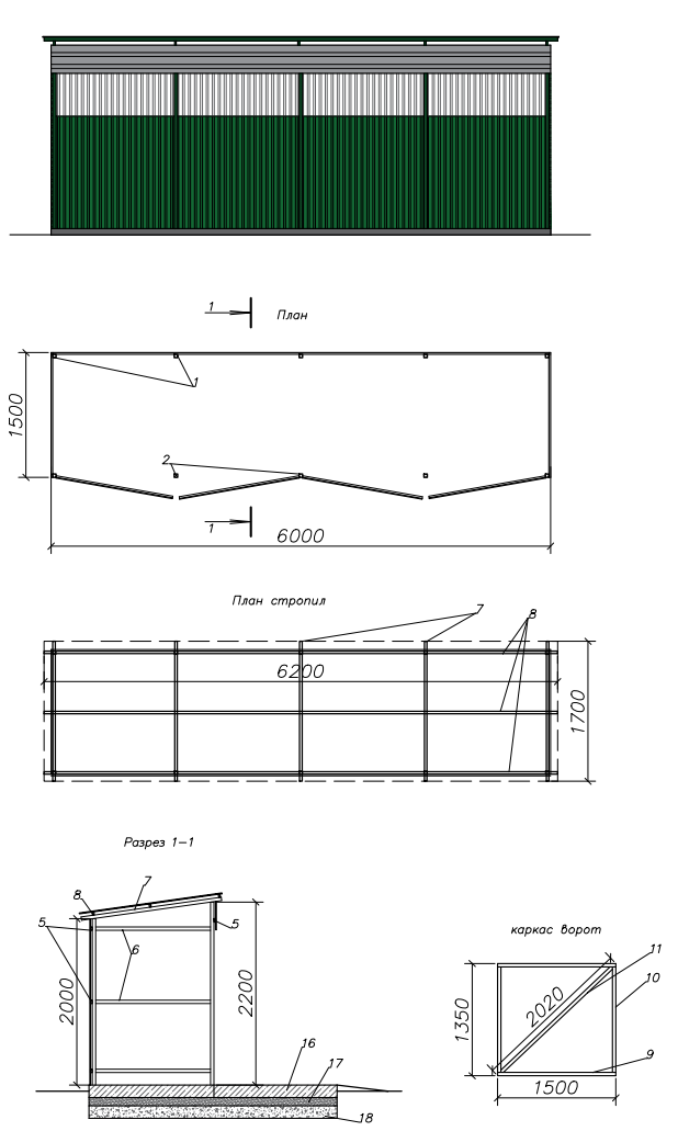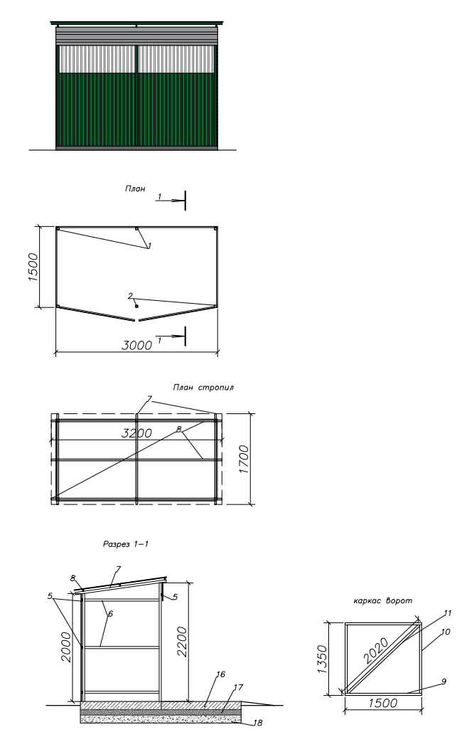 3.2.17. Графическое изображение мест (площадок) для накопления твердых коммунальных отходов закрытого типа (с навесом (кровлей) под установку контейнерных баков приведено ниже: