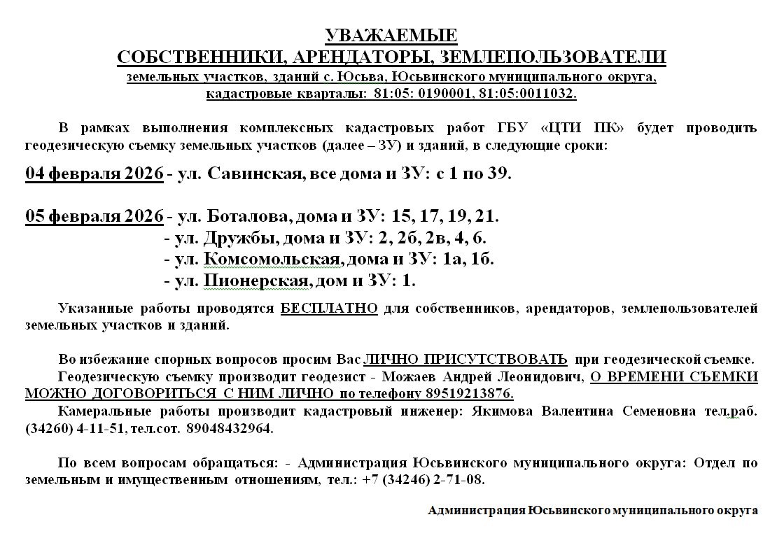 В с. Юсьва будут проводить геодезическую съемку земельных участков