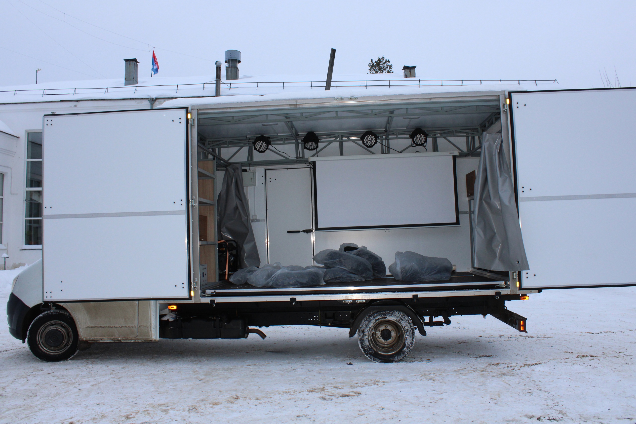Предполагается, что в таком мобильном центре можно проводить любые культурно-массовые мероприятия. Автоклуб легко трансформируется в концертную площадку, он оборудован световым, звуковым и мультимедийным оборудованием, дизель-генератором.