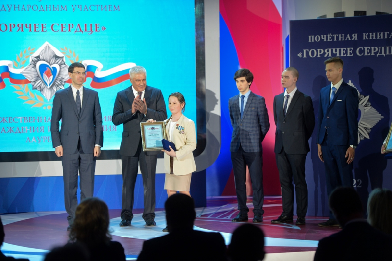 Министр вручил нагрудные знаки «Горячее сердце» пятерым юным лауреатам и пожелал им отличной учебы, новых побед, спортивных и творческих достижений.