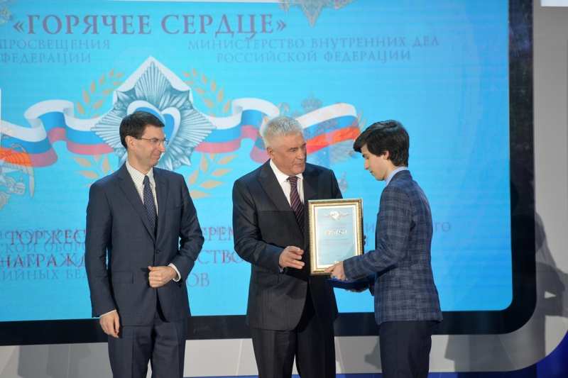 Сегодня Министр внутренних дел Российской Федерации генерал полиции Российской Федерации Владимир Колокольцев принял участие в IX Торжественной церемонии награждения лауреатов Всероссийской общественно-государственной инициативы «Горячее сердце». Мероприятие, на котором чествовали отважных представителей молодого поколения, состоялось в Зале Славы Музея Победы на Поклонной горе.