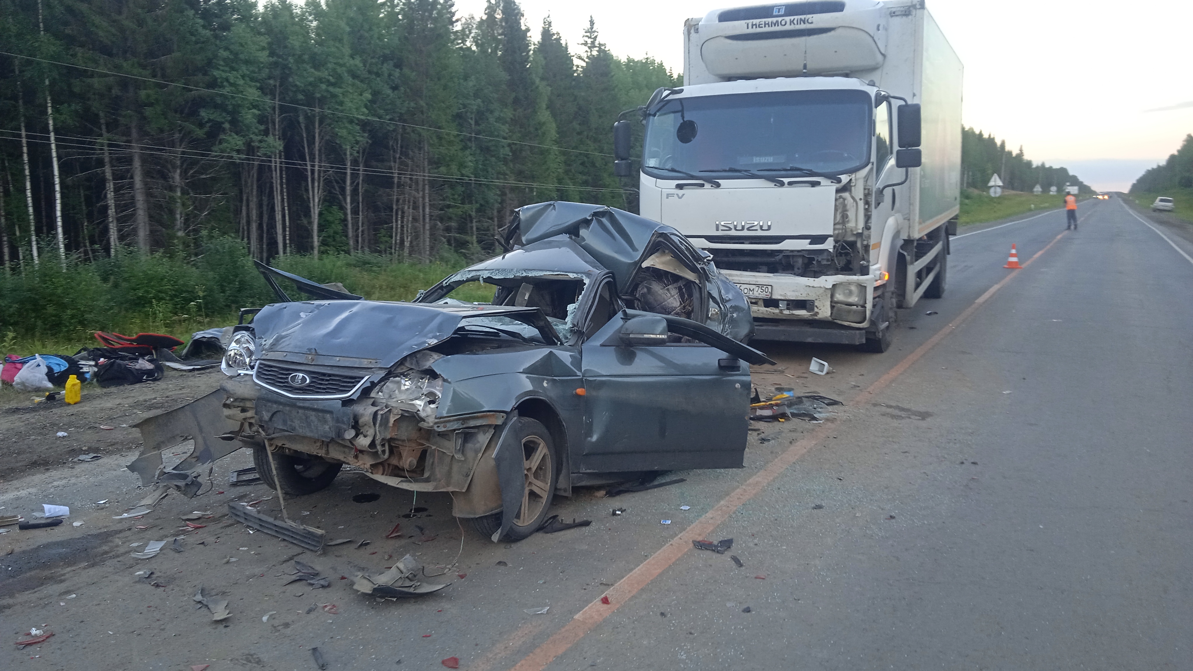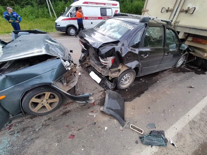 12 августа в 17.20 час. по автодороге Нытва-Кудымкар со стороны г. Нытвы в направлении г. Кудымкара следовал грузовой автомобиль «ИСУЗУ АФ» под управлением мужчины 1997 года рождения. По предварительным данным, на 97 километре трассы водитель не выбрал необходимую безопасную дистанцию и допустил столкновение с двигавшейся в попутном направлении «Ладой Приорой», которая от удара столкнулась еще с тремя едущими впереди машинами: «Ладой Грантой», «ГАЗ-28181» и «Тойотой Камри».