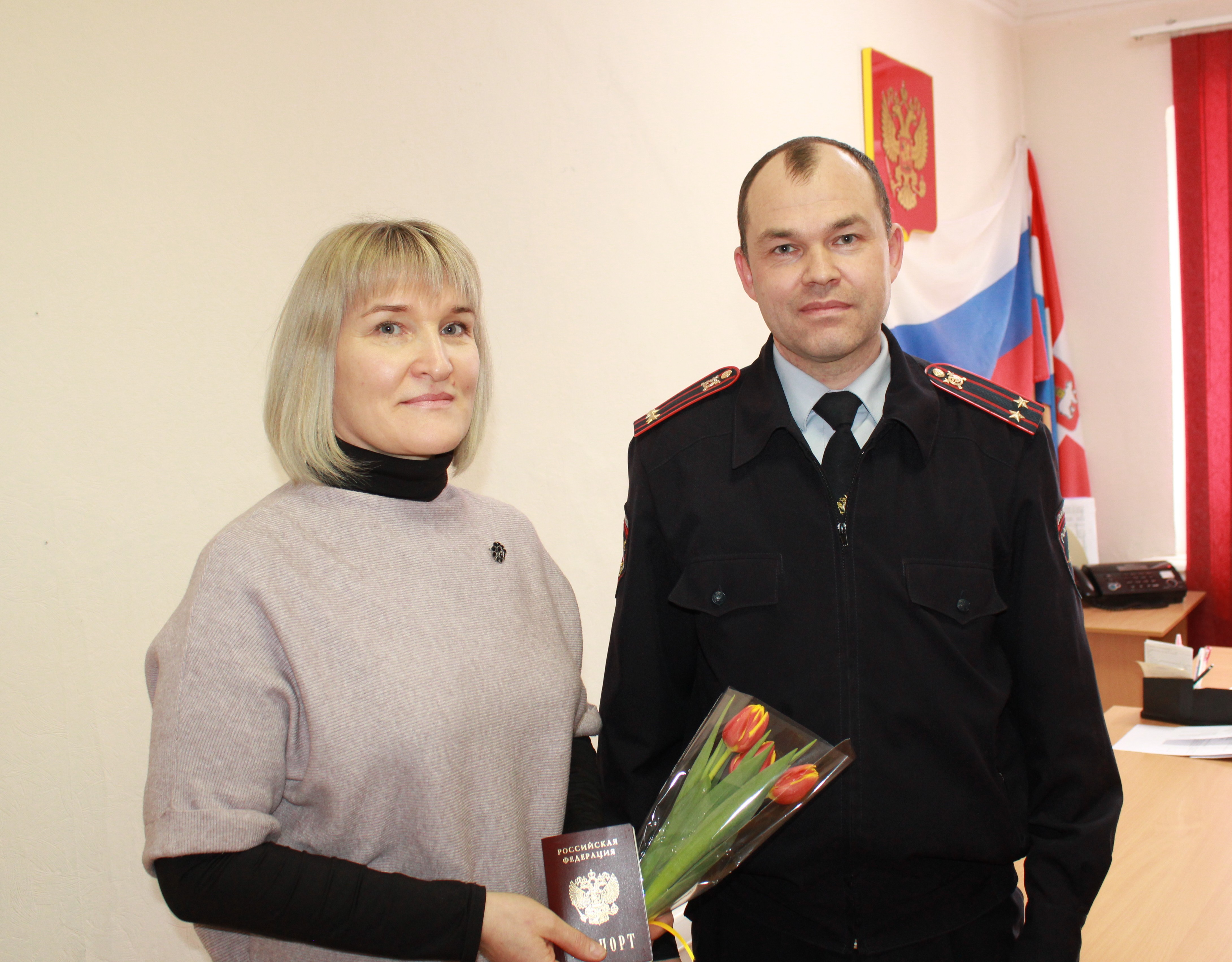 Начальник миграционной службы подполковник полиции Николай Рочев подарил представительницам прекрасной половины человечества цветы с пожеланием отличного весеннего настроения, счастья и семейного благополучия, а также торжественно вручил им паспорта. Помимо этого женщины получили праздничные памятки, содержащие сведения по профилактике мошенничества.