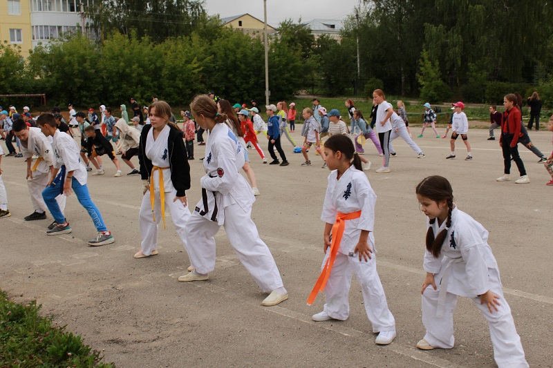 Правоохранители и дети собрались на школьном стадионе. Участники мероприятия выполнили комплекс упражнений, который вместе со своими воспитанниками продемонстрировал Дмитрий Носков - представитель Общественного совета, тренер по киокусинкай-каратэ местной спортивной школы.