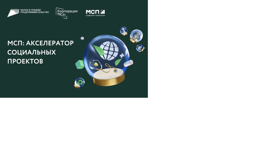 В рамках нацпроекта «Малое и среднее предпринимательство» федеральная Корпорация МСП запускает бесплатную программу для социальных предпринимателей. Участие в акселераторе – это возможность за 2 месяца индивидуальной работы с экспертами и ведущими специалистами прокачать бизнес и масштабироваться.