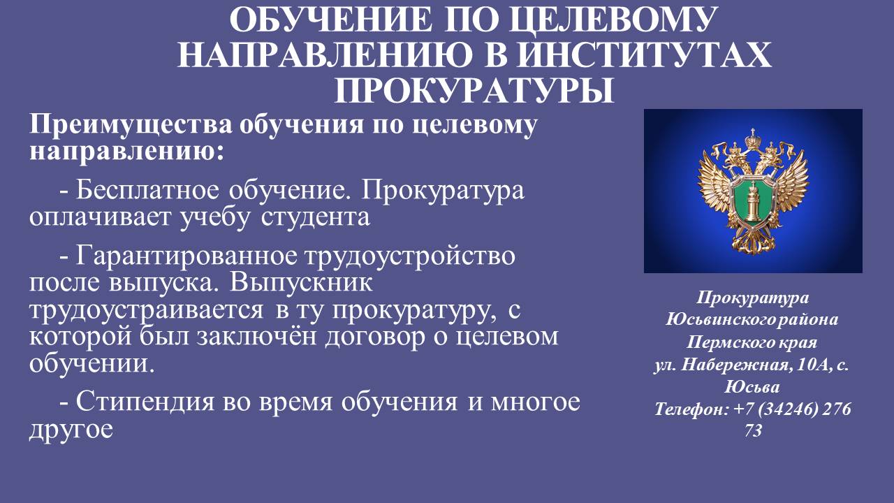 ОБУЧЕНИЕ ПО ЦЕЛЕВОМУ НАПРАВЛЕНИЮ В ИНСТИТУТАХ ПРОКУРАТУРЫ