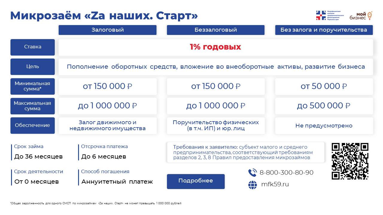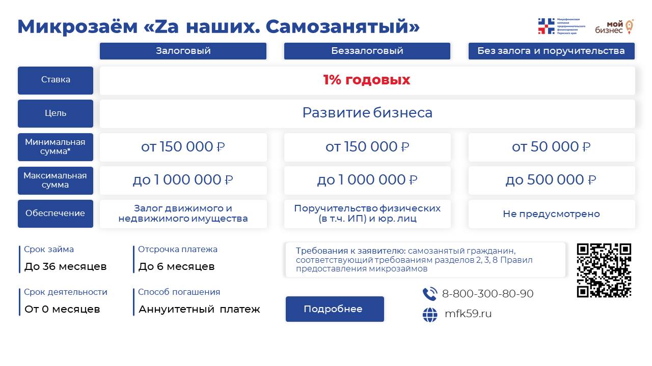 На сегодняшний день в рамках программы запущены три льготных микрозайма: «Za наших», «Za наших. Старт» (для начинающих предпринимателей) и «Za наших. Самозанятый» (для самозанятых граждан).