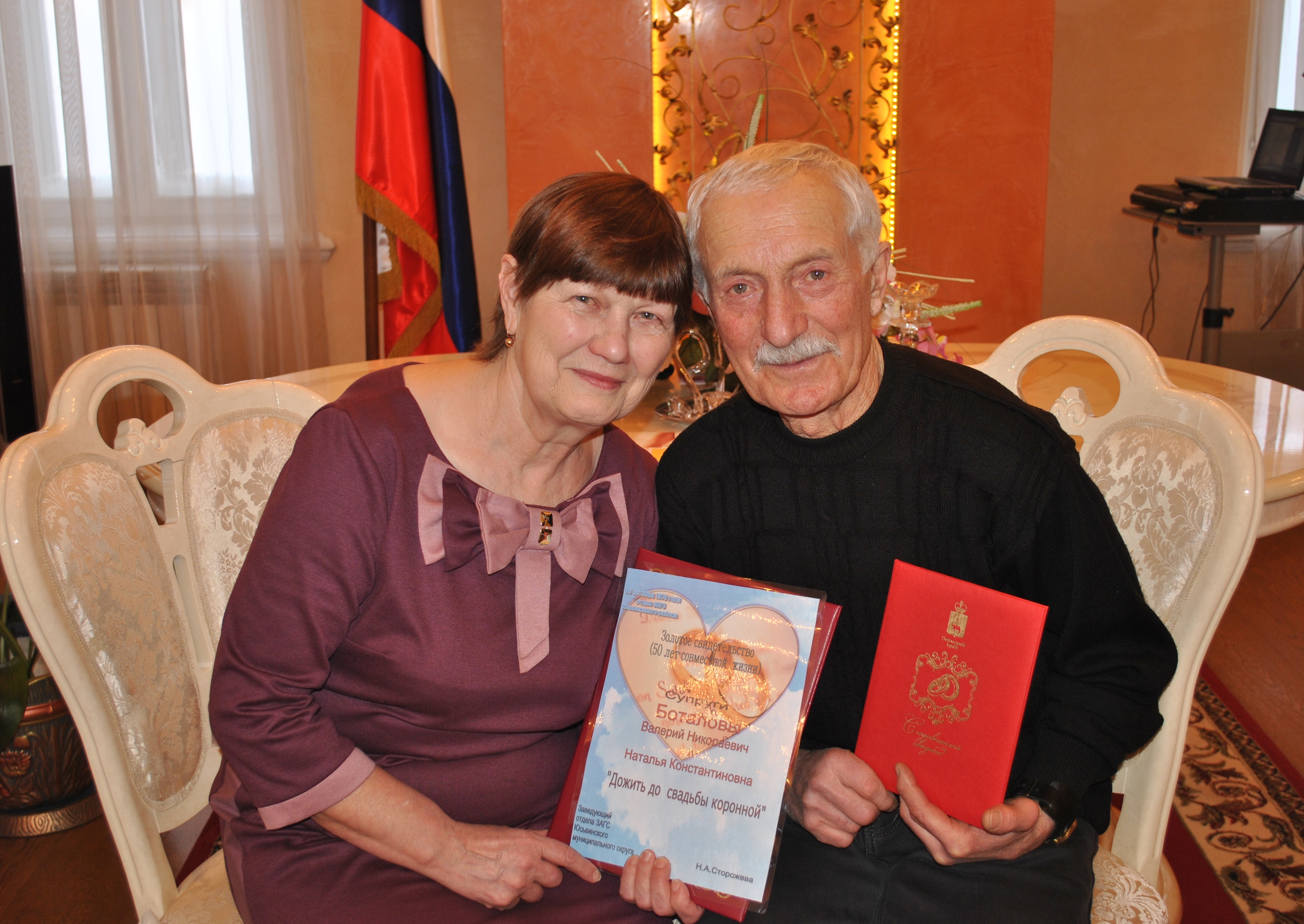 Сразу надо сказать, что отметить ее планировалось 6 октября прошедшего года, но в связи с эпидемиологической обстановкой в нашем округе, да и в России в целом, отделу ЗАГС поздравить юбиляров не удалось. И эта не единственная юбилейная пара, поздравить которых вовремя не представилось возможным. Но все пары будут поздравлены в текущем году.