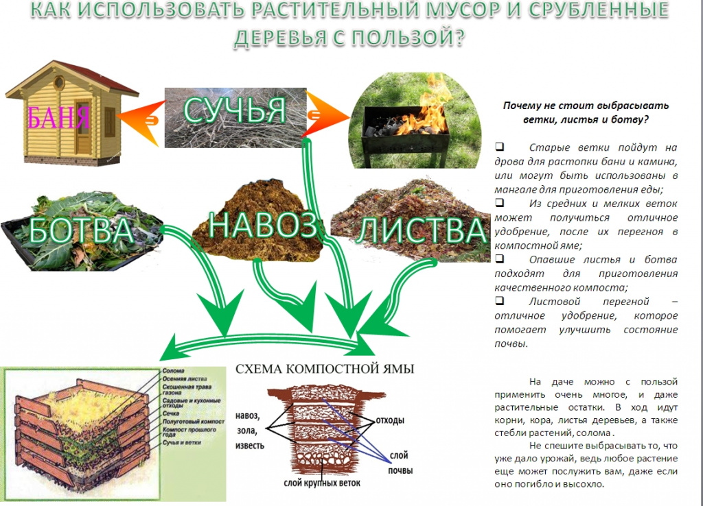 Памятка как использовать растительный мусор и срубленные деревья с пользой.