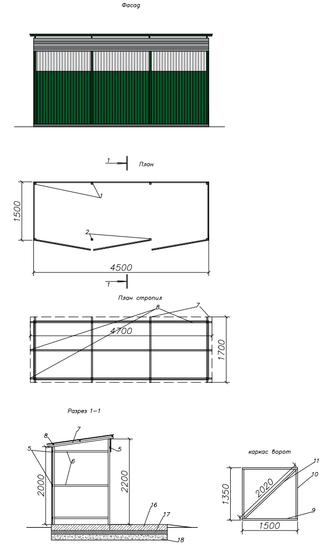 3.2.17. Графическое изображение мест (площадок) для накопления твердых коммунальных отходов закрытого типа (с навесом (кровлей) под установку контейнерных баков приведено ниже: